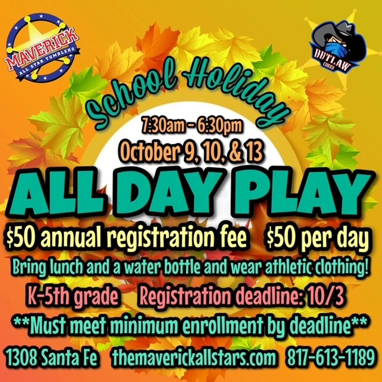 Maverick All Star Tumblers provides excellence in day camps! Join us for our Summer, Winter, Holiday, and Spring Break Camps. Kids get to play in our 19,000 square foot facility, jump on the trampolines, and climb the rock wall! Our customized program delivers fun, fitness, and faith formation with exclusive All Day Play curriculum.